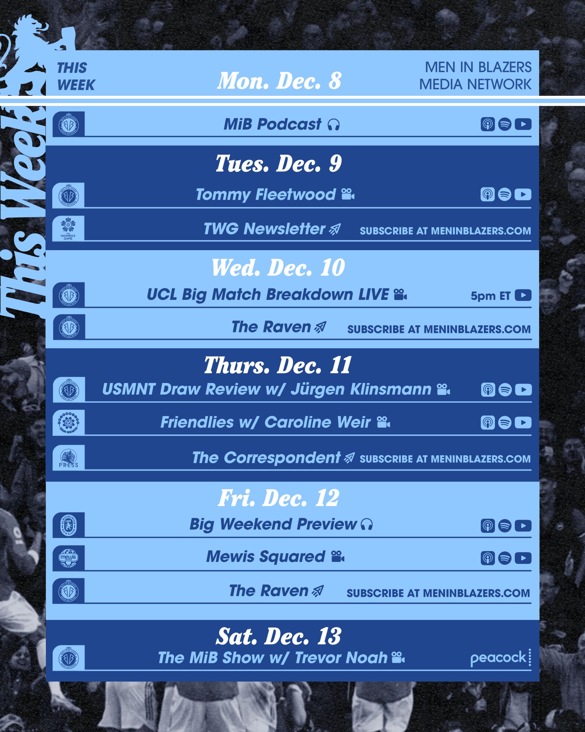 🐦⬛ The Raven: Our Monday and Friday newsletter where we preview the biggest matches around the world (and tell you where/how to watch them) and recap our favorite football moments from the weekend.